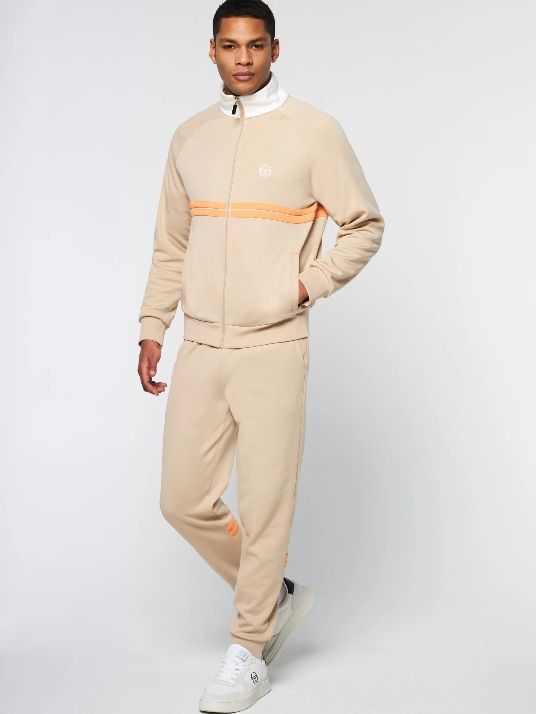The Dallas Track Jacket is made of soft poly-cotton and features taping stripes across the chest, a contrast stand-up collar, and our iconic ‘ST’ monogram embroidered at the left chest. Part of our heritage Archivio collection—celebrating classic designs from the archive—the Dallas is a reissue of the original jacket popularized by John McEnroe during his 1984 Grand Slam win at Wimbledon and later became a staple among British ‘casual’ culture in the 80s.