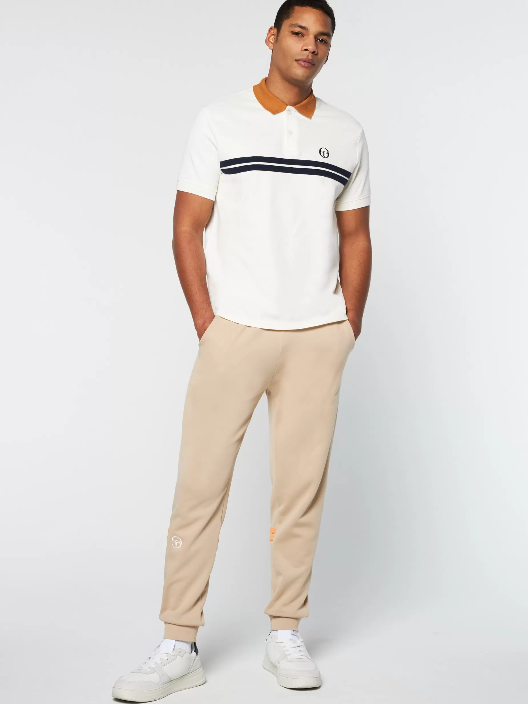The Supermac Polo is a true Tacchini classic, worn by tennis champion John McEnroe and a staple piece for British ‘casuals’ throughout the ’80s. Crafted from breathable cotton piqué, this premium polo features double stripe taping across the chest and our iconic ‘ST’ monogram logo embroidered at the left front.